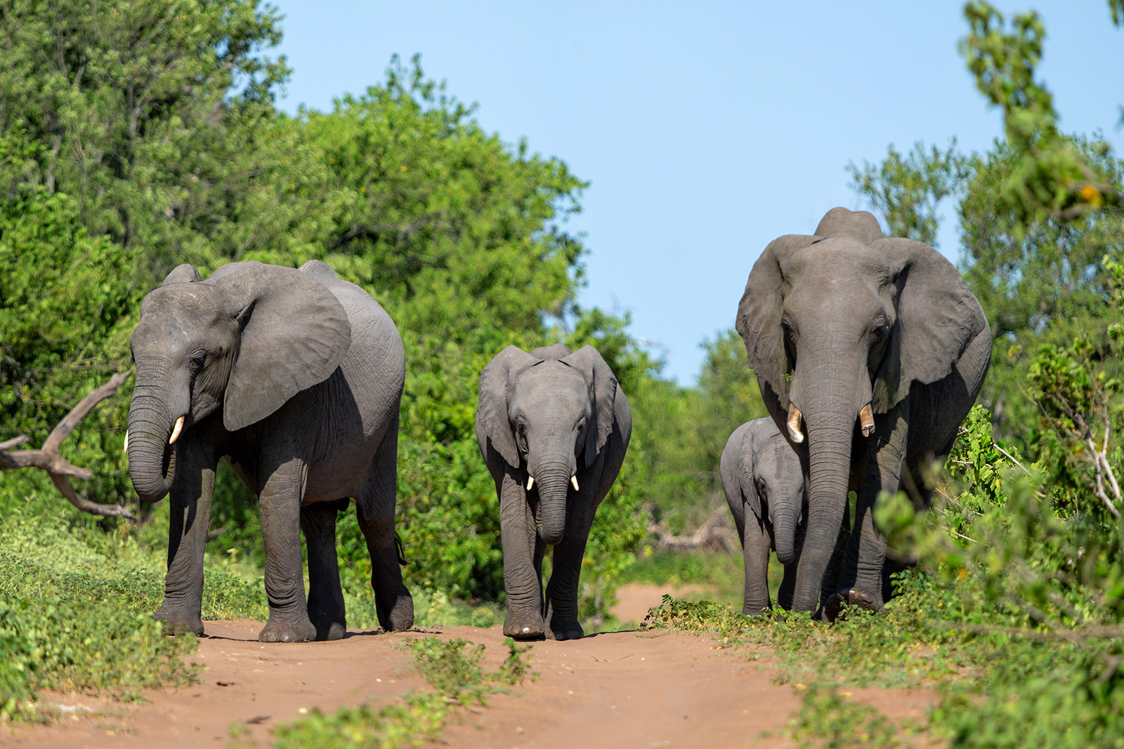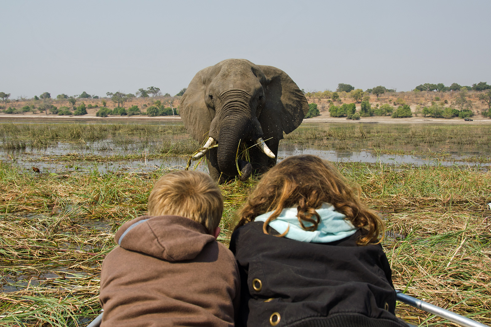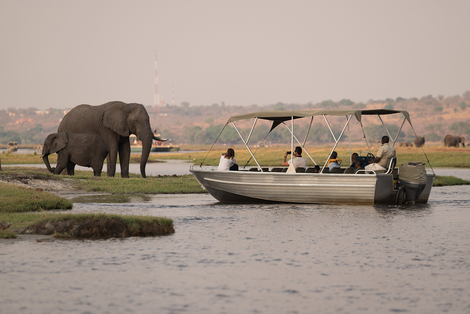 Départ en direction de la frontière avec le Botswana. Fin des services du guide francophone. Arrivée et installation au lodge. Déjeuner. Puis, départ pour une excursion en bateau sur la rivière Chobe, lieu de rendez-vous des éléphants. Dîner et nuit au lodge.