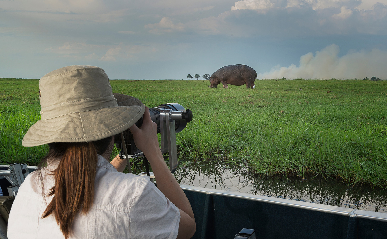 Départ aux aurores pour un safari 4×4 dans le parc de Chobe avec un ranger anglophone. Déjeuner. Transfert anglophone vers les Chutes Victoria au Zimbabwe. Départ pour une croisière au coucher du soleil sur le fleuve Zambèze. Dîner et nuit à l’hôtel.