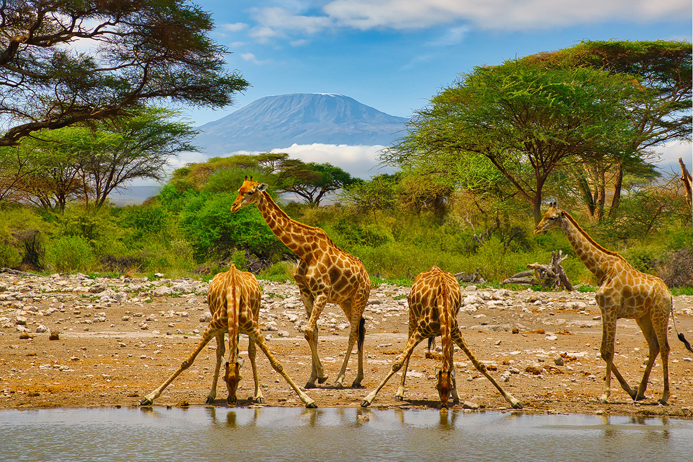 Petit déjeuner au lodge et départ pour une belle journée de safari. Ce parc se trouve au pied du mont Kilimandjaro, c’est d’ici que l’on distingue le mieux le sommet enneigé du toit de l’Afrique. Vous pouvez donc découvrir des paysages de savanes grandioses avec le sommet enneigé en toile de fond. Déjeuner au lodge. Safari dans l’après-midi et retour au lodge au coucher du soleil. Dîner et nuit au lodge.