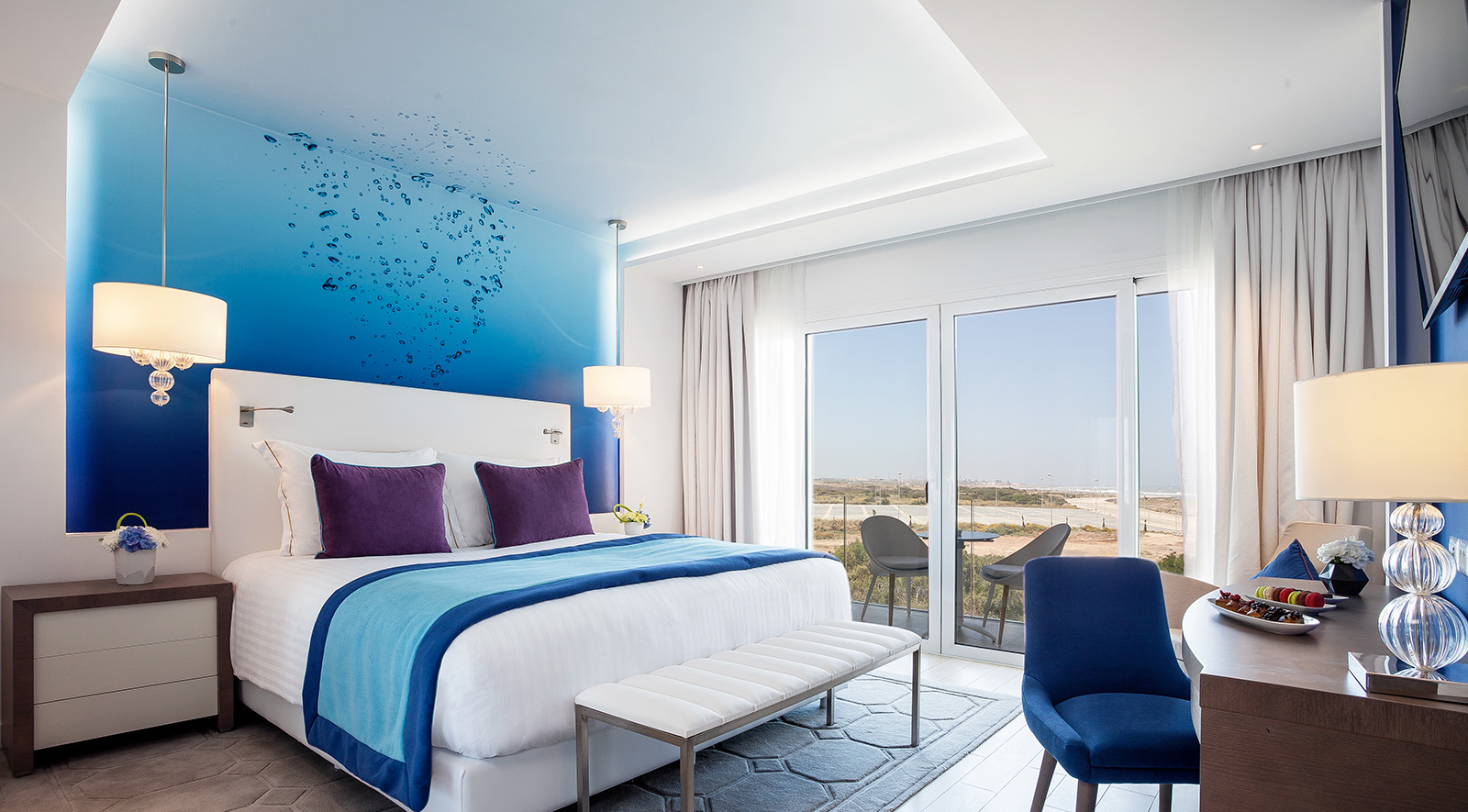 130 chambres et suites spacieuses (de 30 à 78 m²), avec des équipements modernes, alliant design contemporain et touches marocaines, vous garantissent un séjour des plus confortables. Toutes les chambres disposent d’un balcon ou d’une terrasse privée offrant une vue imprenable sur la mer, les jardins ou le golf et sont équipées de literie de qualité (lit king size), téléphone, TV, WiFi gratuit, minibar, machine à café, plateau de courtoisie avec thé/café, coffre-fort, sèche-cheveux, chauffage/climatisation.
