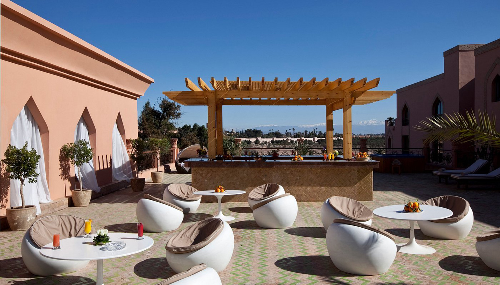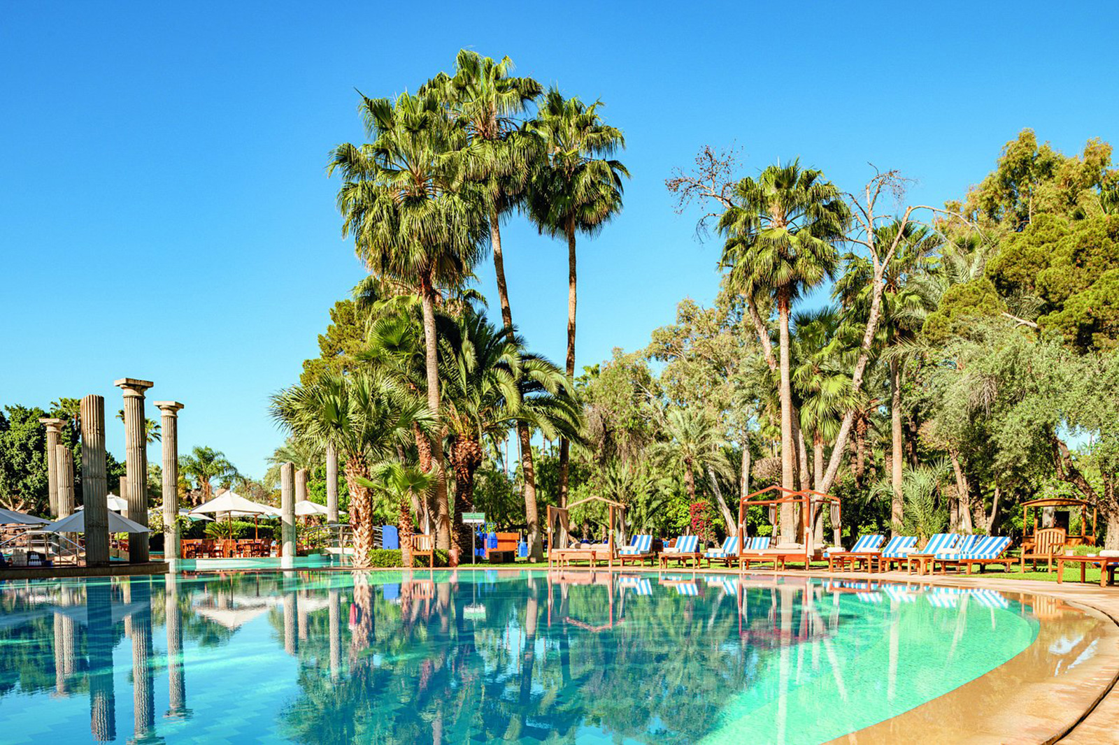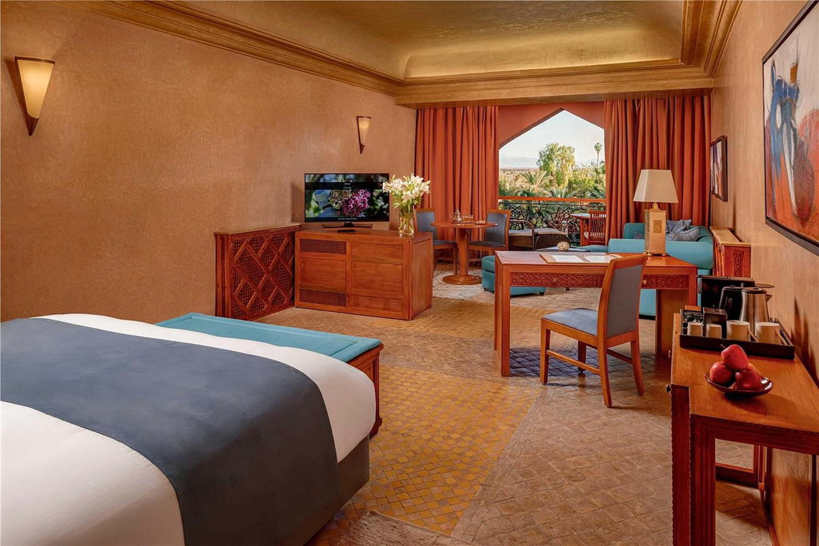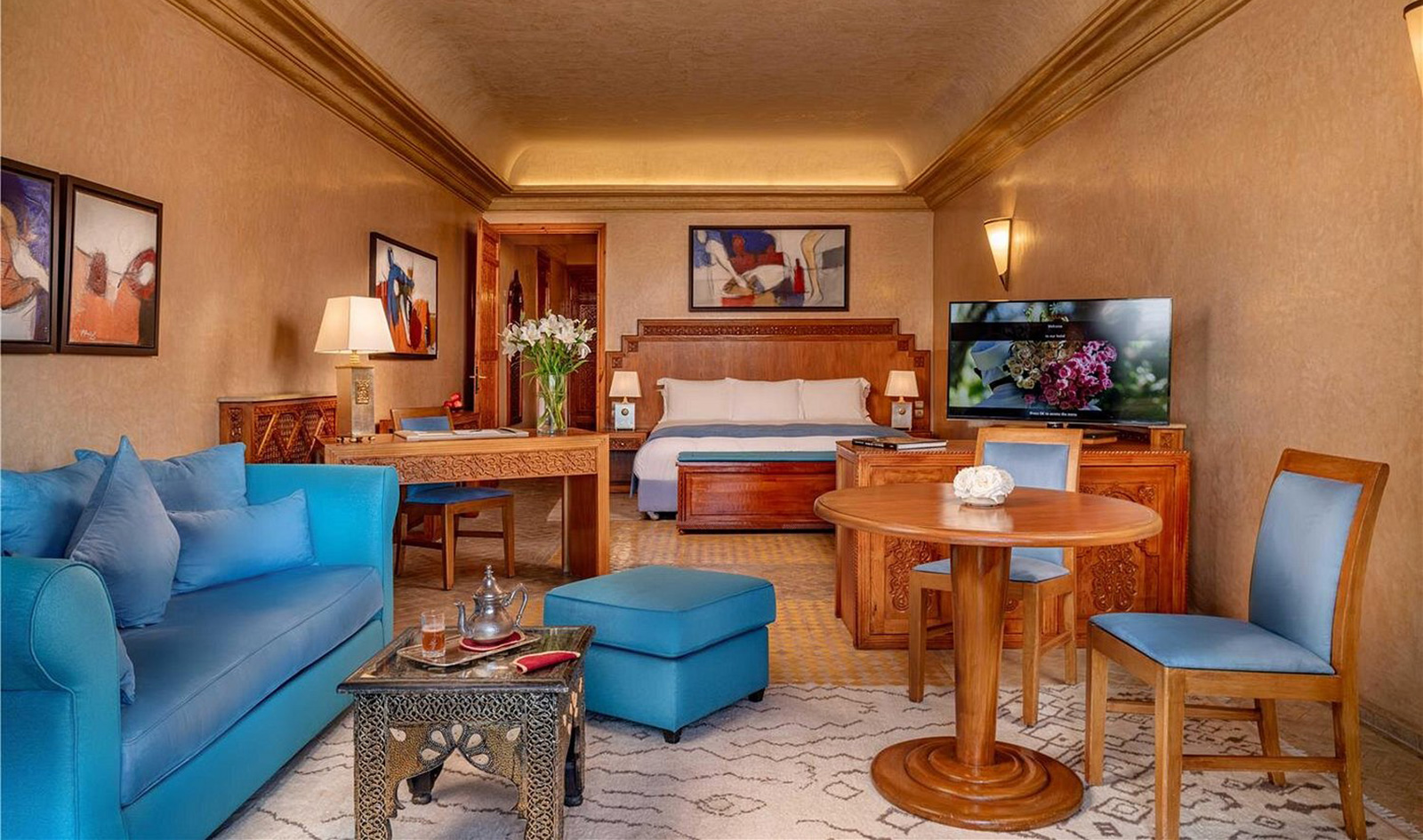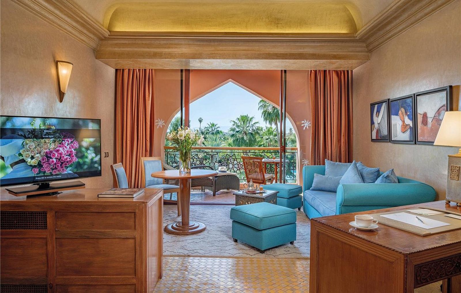 Érigé au cœur d’un parc de 8 hectares, le Es Saadi Palace est un un véritable éden. Une invitation à la détente, au bien-être et au luxe. À ses pieds, une des plus grandes piscines de Marrakech déploie ses eaux turquoises. Le resort est idéalement situé dans le quartier résidentiel de l’Hivernage, face à la chaîne montagneuse de l’Atlas et à deux pas des murs de la vieille-ville ou des jardins de la Menara. L’aéroport est à 10 minutes en voiture.