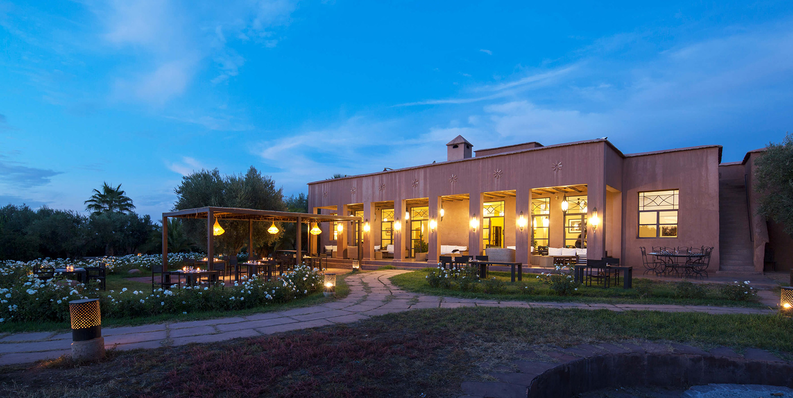 A seulement 30 min. en voiture de l’aéroport de Marrakech et du centre-ville, au pied de la vallée de l’Ourika, Quaryati est un véritable éco-lodge occupant un terrain de 7 ha, magnifiquement fleuri, au milieu de champs de blé et entouré d’oliviers. Ce lieu est idéal pour un dépaysement total, de nombreuses activités et excursions y sont proposées, pour agémenter vos journées. Une vaste piscine ravira chacun après une journée de balades dans la région.