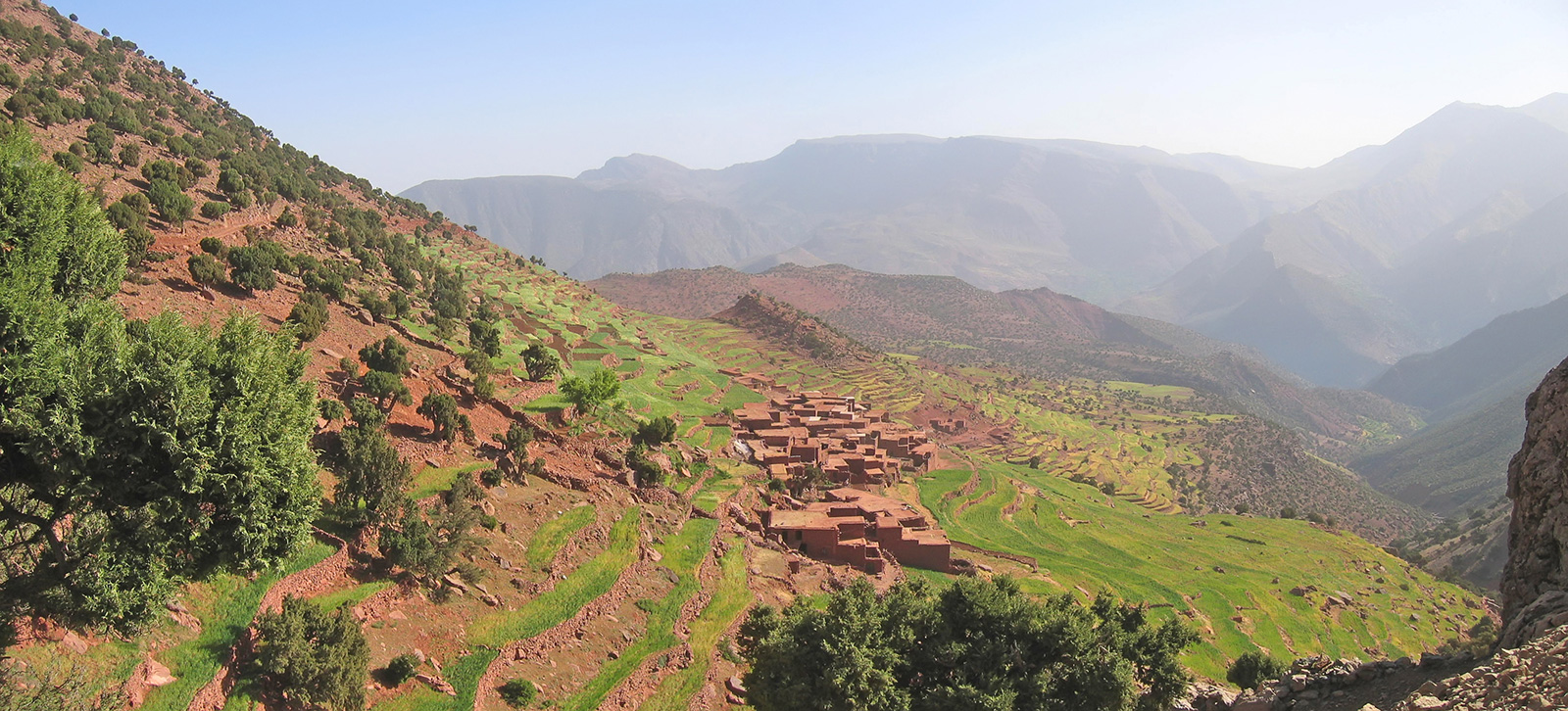 Petit déjeuner. Vous poursuivez votre randonnée vers les villages fortifiés de Tioughassine et Annemiter, dont l’architecture a souvent inspiré le peintre Jacques Majorelle au début du XXeᵉ siècle. Vous rejoignez ensuite le beau village de Tighouza, dominant l’ensemble de la vallée. Dîner et nuit chez l’habitant (logement en maison d’hôtes en option).