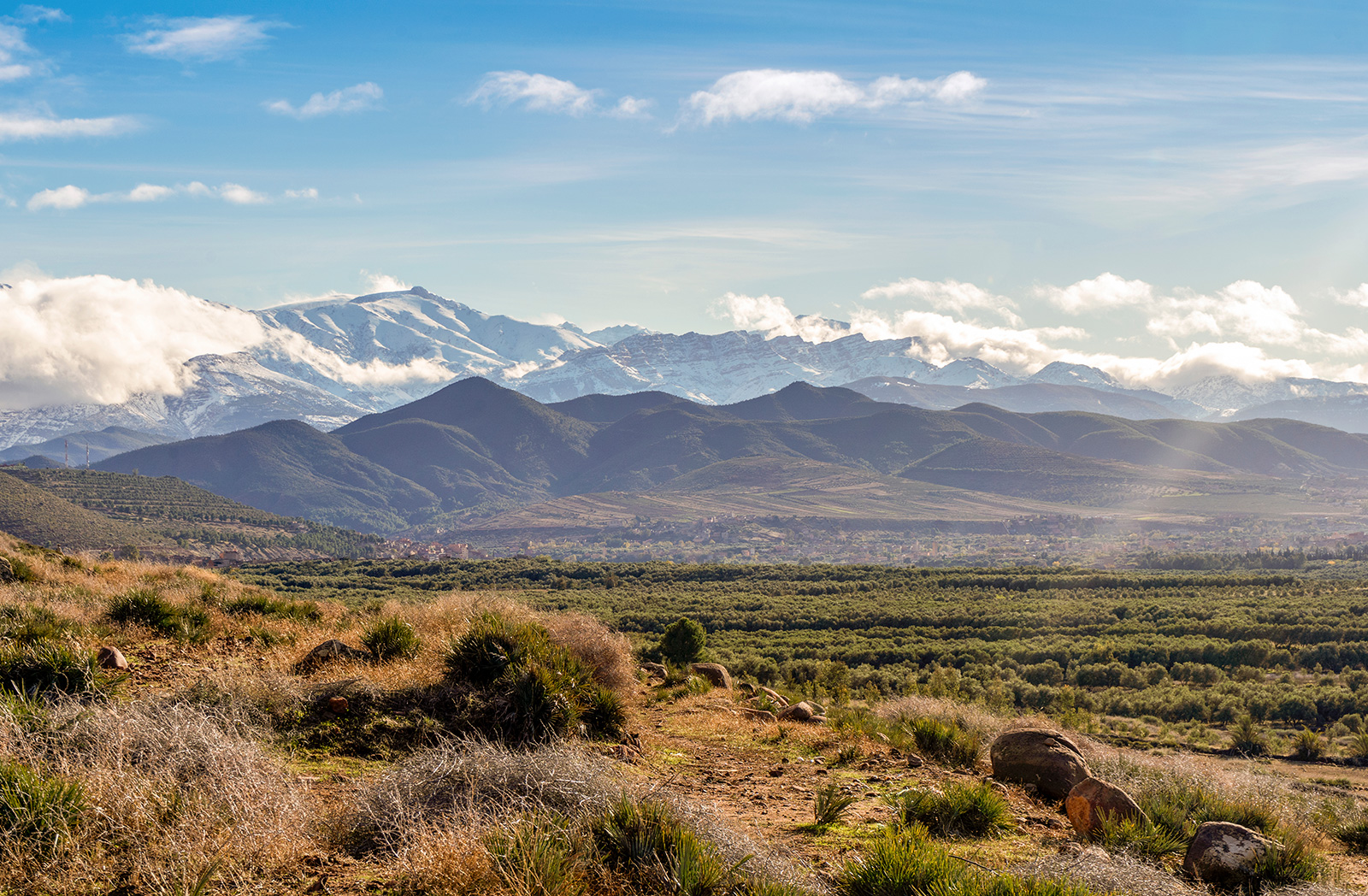 Du ksar Ait Benhaddou à la kasbah de Telouet, cette marche sur la piste du sel vous mènera à la découverte des beaux villages de kasbahs de la vallée d’Ounila. Des forteresses qui protégeaient autrefois les caravanes de marchandises contre les attaques des pilleurs qui sillonnaient cette unique piste caravanière reliant le sud marocain aux caravansérails de Marrakech. Cette randonnée dans la vallée d’Ounila sera un plaisir quotidien. Avec un défilé de paysages aux couleurs de terre ocre rouge, des villages fortifiés, des cultures en terrasses et jardins verdoyants le long de l’oued, ou encore des lauriers roses bordant de petits canyons. En février, les amandiers en fleurs apportent une touche de féérie à ces paysages qui ont tant inspiré Jacques Majorelle, le peintre des kasbahs. Population accueillante, authenticité des rencontres, sont les autres caractéristiques de cette randonnée située sur les premiers contreforts de l’atlas marocain proche de Ouarzazate. Nous recommandons cette randonnée aux personnes préférant des parcours faciles avec des moments de détente.