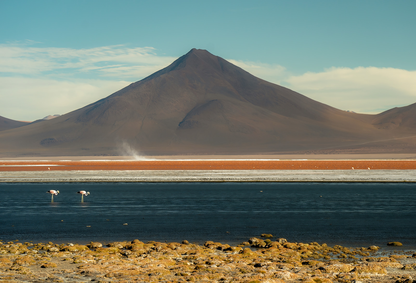Départ avec votre guide francophone vers le «Paseo del León», canyon ocre et beige aux multiples abris sous roches où tranche le vert des énormes touffes de «Yareta». À l’ouest, on aperçoit les fumeroles de l’Ollagüe, le seul volcan actif de la région, sur la frontière avec le Chili. Passage par les Joyaux des Andes: des lagunas (petit lacs) aux couleurs saisissantes situées entre 4000m et 4200m. Nommées Cañapa, Hedionda, Chiar Khota, Honda, toutes ces lagunas sont de nuances différentes, entourées d’impressionnants volcans. Déjeuner en plein air en cours d’excursion. Continuation en direction du désert du Siloli. Arrivée et installation à l’hôtel. Dîner inclus. Nuit dans le désert du Siloli.