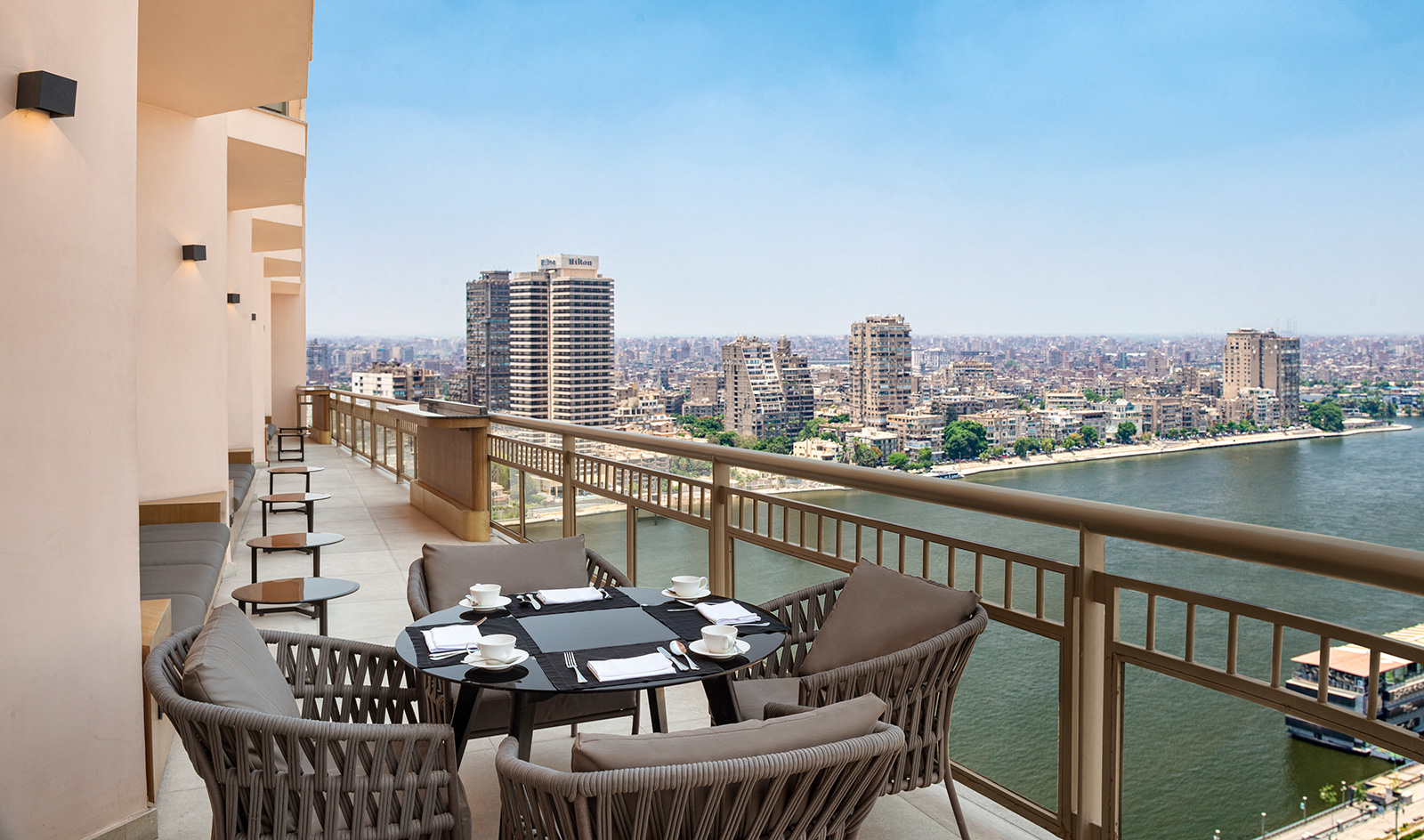 L’hôtel dispose d’installations modernes: une piscine extérieure avec vue sur le Nil, un centre de remise en forme, un spa luxueux, des salles de réunion high-tech et un espace événementiel. Son emplacement central facilite l’accès aux principales attractions culturelles et historiques du Caire.