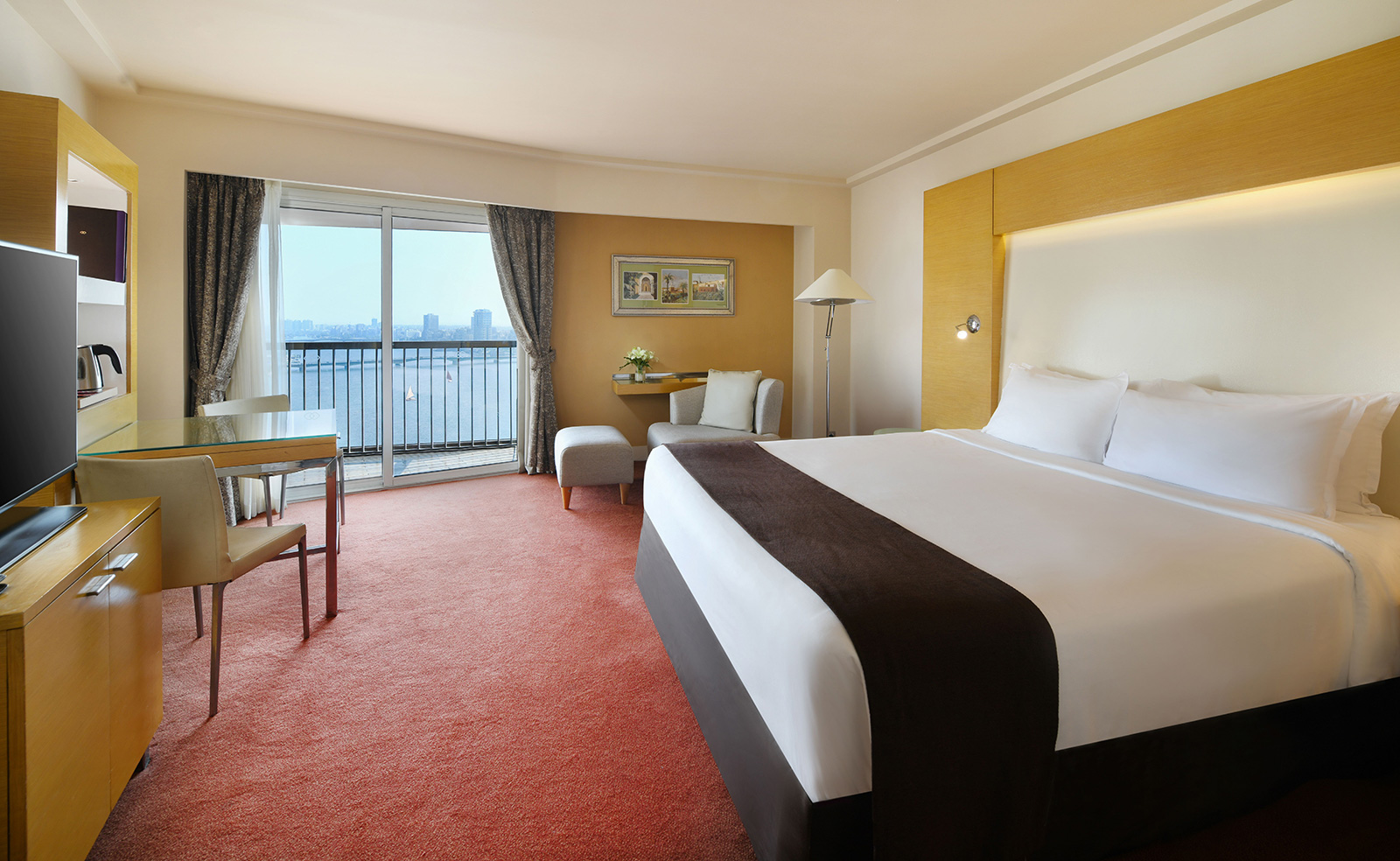433 chambres, dont 50 Suites, réparties dans une tour de 27 étages. Les chambres Supérieures (du 1er au 6e étage) sont confortables, équipées de climatisation, téléphone, TV LCD par satellite, minibar, accès internet et WiFi (payant), coffre-fort, salle de bains avec sèche-cheveux, elles offrent une vue partielle sur le Nil. Les chambres Premium sont situées dans des étages plus élevés, la vue est toujours partielle sur le Nil. Les chambres Luxury, équipement identique, mais offrent une vue Nil. Les chambres Magnifique offrent une vue panoramique sur le Nil.