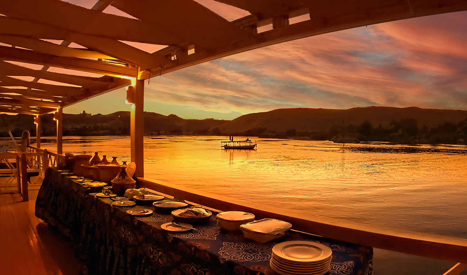 - Tous les repas sont servis sur le pont soleil (oriental / nubien).