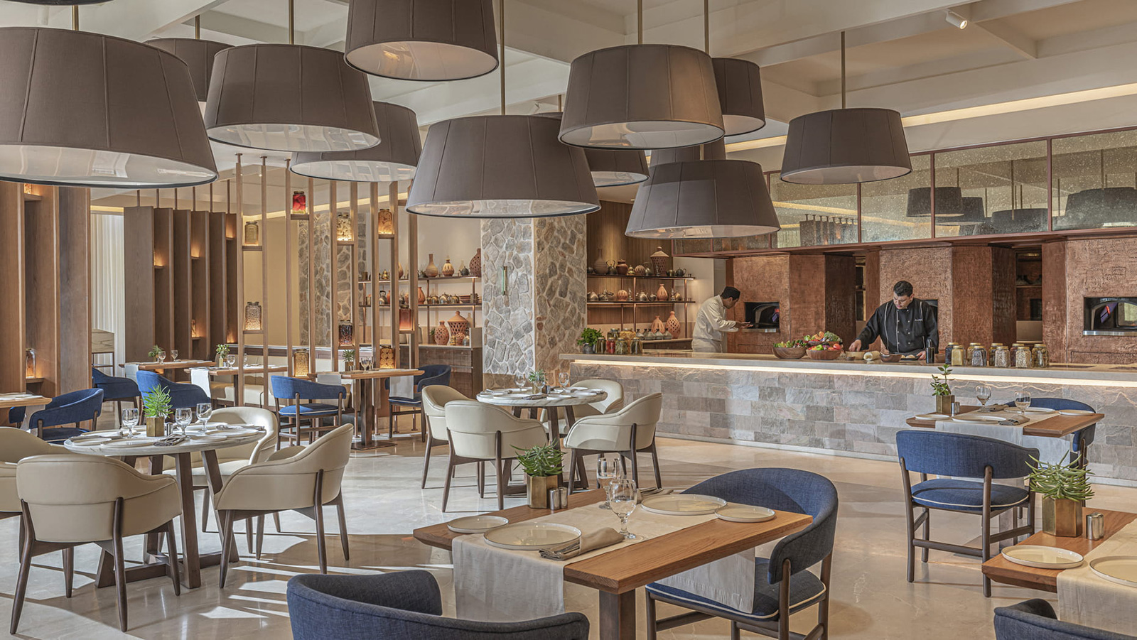 Restaurant principal proposant des spécialités méditerranéennes, marocaines et libanaises, excellent restaurant italien, restaurant au bord de la piscine et barbecue en bord de mer.