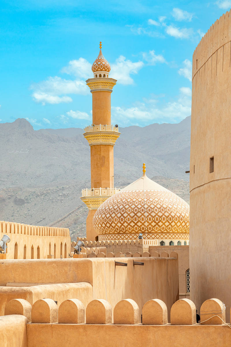 Petit déjeuner, puis visite de la Grande Mosquée du Sultan Qaboos, véritable chef d’oeuvre architectural. Continuation vers le village d’Al Hamra et sa verdoyante palmeraie, la maison-musée Bait Al Safah, où vous découvrirez une maison traditionnelle, racontant la vie des omanais. Continuation vers Wadi Ghul, puis montée sur le Jebel Shams, pour voir le grand canyon d’Oman. Pause déjeuner au camping. Route pour à Nizwa, capitale de l’intérieur, qui possède l’une des plus anciennes mosquées au monde. A l’arrivée, balade dans son souk réputé pour son artisanat: khanjars (poignards recourbés), poteries, vanneries… Dîner et nuit à l’hôtel.